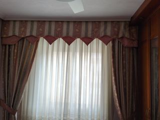 Colcha salmón de Reig Marti para cama de 1,50 con bando a juego y cortina para pared de 2,35. Regalo almohadas a juego