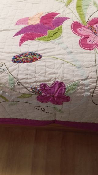 Edredón en muy buen estado, incluye cojín con su relleno, medidas del edredón 255x170cm, cojin de 40x40cm.