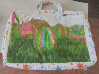 Bolsa acolchada con simbología infantil , para guardar edredones y/o sabanas o inclusive se le puede dar otro uso .Marca manterol
