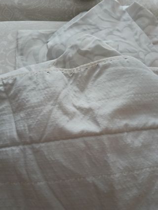 Edredón para cama de matrimonio en buen estado. 170x210. Esta en muy buen estado, limpio,vpero tiene un par de manchas persistentes. Ver fotos. Incluye bolsa de plástico para guardarlo al vacío. - Color blanco. - Material de poliéster.