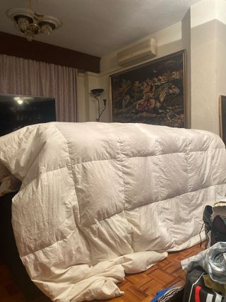 Tengo 800 artículos más en liquidación a estos niveles → entra en mi perfil y mira el resto. Edredón nórdico de plumón 92% 260 x 240 cm, gramaje 250 g para otoño/invierno. Exterior algodón extrasuave y transpirable. Relleno natural cálido y ligero. Ideal para camas 150/180 cm. Muy confortable, hipoalergénico y duradero. Perfecto para climas fríos. Si desean recogerlo, estamos muy cerca de la estación RENFE de Alcalá de Henares.