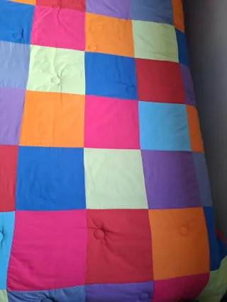 Edredón con un diseño de cuadrados de colores vivos, ideal para una cama individual o juvenil. Aporta un toque alegre a cualquier habitación. Fabricado en USA. - Medidas: 2,23 x 2,23 metros. - Composición: poliéster.