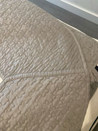 Colcha con un bonito tono beige y azul. cama 135 - Funda edredon abstracto tono amarillo 10€ Cada pieza 10€ Llevando 2 solo 15€ Tambien sabanas y toallas. Pregunta URGE por mudanza