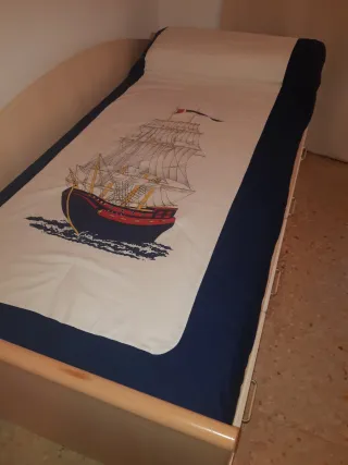 Cama nido individual de 90cm con un colchón de muelles y edredón. Plafon a juego. Somier láminas. Muy buen estado