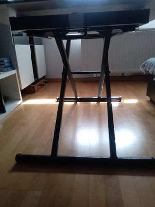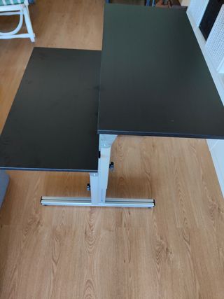 Es para ordenador pero se le puede dar varios usos, es fuerte, se regula en altura cada lado. Ideal para jugar. Altura maxima 94.5cm y mínima 63.5cm. Es nueva, la he montado para la foto. Se envia desmontada (incluidas instrucciones de montajes y dos llaves Allen).