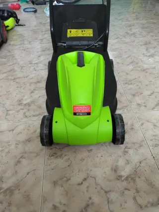 Cortacésped eléctrico de color verde, ideal para mantener tu jardín. - Producto completamente nuevo, sin estrenar. - Diseño compacto y manejable.