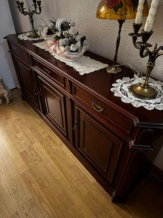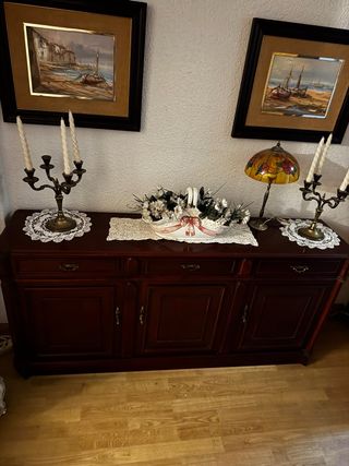 Mueble de ajuar con detalles en madera y cristal. Vasos no incluidos No nos encargamos del envío.