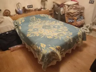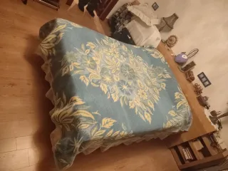 Manta de lana con un bonito estampado floral en tonos azules y amarillos. Sus medidas son 220x180 cm. - Diseño floral. - Tacto suave.