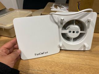 Extractor de aire blanco de la marca FanG*Fast. Ideal para ventilación. - Diseño moderno y compacto. - Panel frontal extraíble.