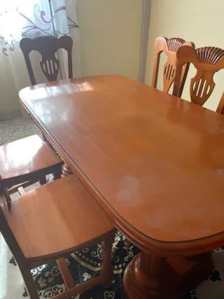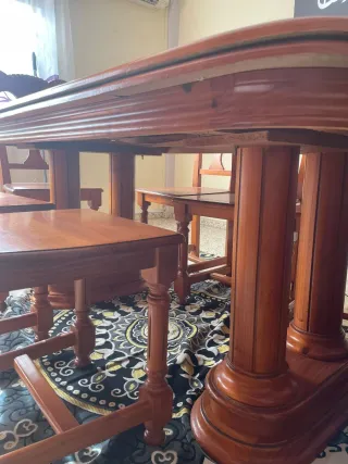 Elegante mesa de comedor con un acabado cálido y natural. - tiene 6 sillas y se puede hacer más grande la mesa - Diseño clásico y robusto. - Base sólida para mayor estabilidad. - Superficie espaciosa para reuniones familiares.