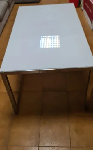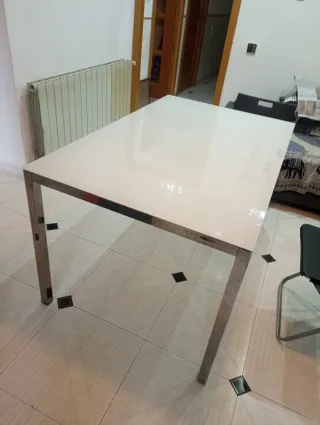 Mesa de comedor blanca y metal