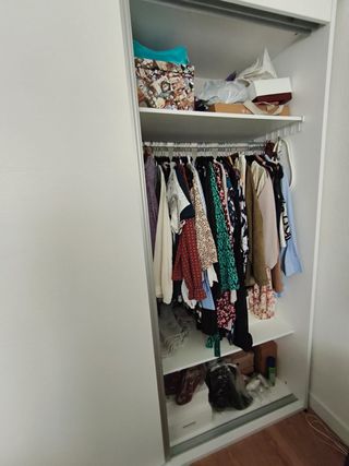 Armario de dos puertas de Rapimueble con solo un año de antigüedad. - Interiores en blanco. Incluye 2 barras, altillo y una cajonera. - Tamaño: 180x200x60 cm Ancho x Alto x Fondo - Diseño moderno y funcional. - Amplio espacio interior para organizar tu ropa y accesorios. El comprador ha de hacerse cargo de su desmontaje y transporte. Se ha de recoger en El Molar (28710), no antes de 28 de Enero 2026. Se vende por mudanza y no disponer de espacio en destino para este armario.