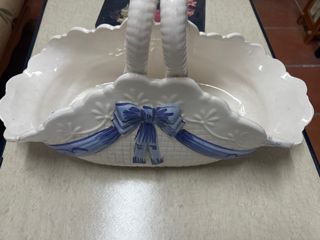 Cesta de centro con un diseño elegante y versátil. - Material: ceramica - Color: azul.y blanco - Forma: Ovalada