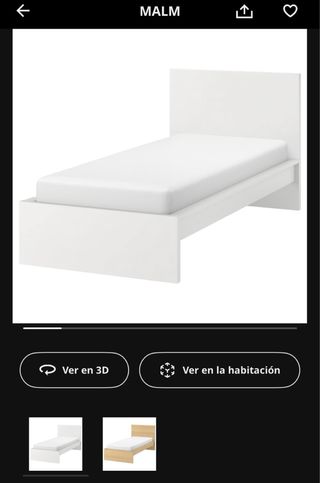Cama individual MALM de Ikea en color blanco. Un diseño moderno y funcional. - Estructura de madera. - Cabecero integrado. - Somier - Colchón visco Se entrega desmontado