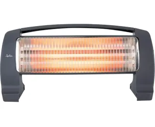 Calefactor de cuarzo Jata en color gris. Diseñado para proporcionar calor de forma eficiente. Jata ICES 2201 con 3 barras de cuarzo,3 potencias de calor (375-760-1200W). Silencioso, ahorro de energía, anti vuelco, asa de transporte