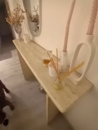 Elegante recibidor con un diseño moderno y materiales de calidad. - mármol travertino - Tonos beige y blanco que aportan luminosidad. 100 y con espejo 120