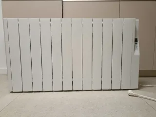 Radiador eléctrico de diseño moderno. Fabricado en aluminio Color blanco. 12 elementos. Digital. Programable. Sin soporte a pared. Recogida en persona