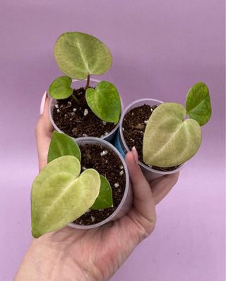 Seedlings de Anthurium Silver Blush Mint Variegata x ( Papillilaminum Guna Yala x Besseae) Si quieres elegir un seedling concreto escribeme por insta y te mando fotos. 💸 Pedido minimo 10€ 🪴Tengo mas plantitas en el perfil, si quieres varias escríbeme y te hago un pack ☺️ 🚫Los precios no son negociables 🏷️ No hago reservas 📦Envio todas las plantas envueltas de forma segura para que lleguen en perfectas condiciones. 🚚 Hago envíos los Lunes o Martes por Correos, GLS o Seur 📷🌱🪴 Subo fotos de mi coleccion de plantas a Instagram: @variegadamental