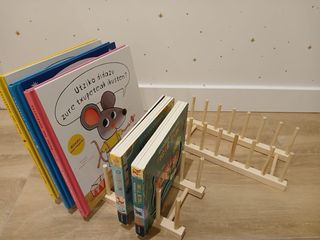 2 Estantes organizadores de madera para libros con varios soportes. - Ideal para libros. - Diseño sencillo y funcional.