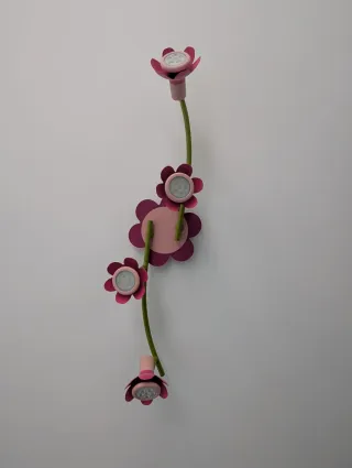 Lámpara de pared con un diseño divertido de flores en tonos rosas y un tallo verde. - Estructura metálica y de plástico. - Diseño floral.