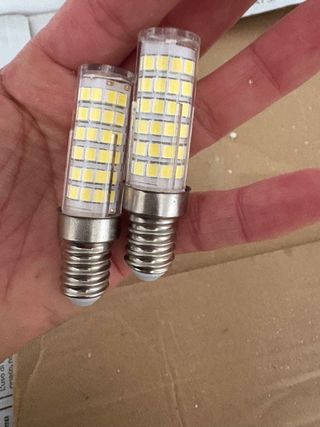 Se venden dos bombillas LED aptas para campana extractora cocina con casquillo E14. Son ideales para dar un toque moderno a cualquier estancia. - Bombillas LED - Apto para campana extractora cocina - Casquillo E14