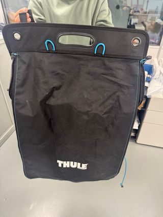 Zapatero de la marca Thule, diseñado para organizar y proteger tu calzado. - Color negro con detalles en azul. - Fabricado en nylon resistente.