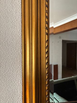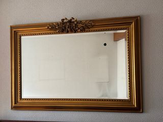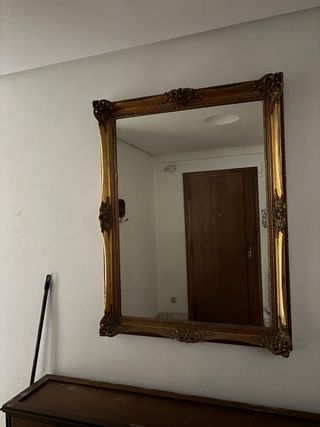 Elegante espejo con un marco decorado con pan de oro. Su diseño clásico lo hace perfecto para cualquier estancia. - Marco con detalles ornamentales. - Acabado en pan de oro. Precio negocliable