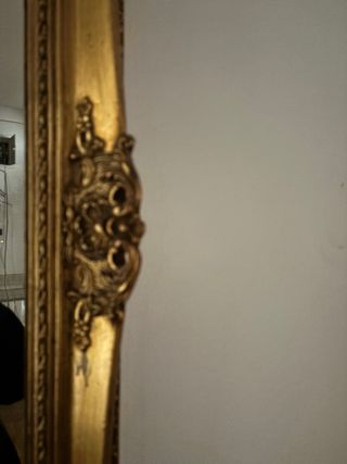 Elegante espejo con un marco de estilo antiguo, que aporta un toque clásico a cualquier estancia. - Marco con detalles ornamentales. - Acabado en pan de oro. Precio negociable