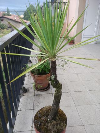 Palmera de 87 cms de altura, en tiesto de barro de 47 cms de altura y 60 cms de diámetro en la parte superior. NO envío, solo entrega en mano. Puedes ver la planta sin compromiso.