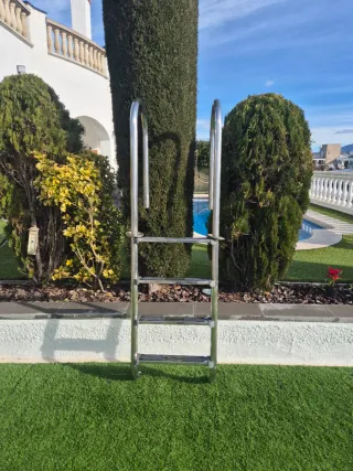 Escalera de piscina Astrapool fabricada en acero inoxidable. - Material: Acero inoxidable. - Diseño robusto y duradero. - Astralpool - 4 peldaños antideslizantes - Dimaetro 50 cm