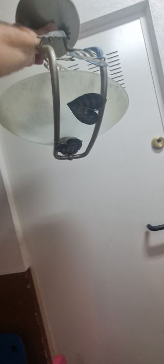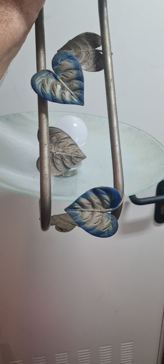 Elegante lámpara con un diseño inspirado en hojas. Aporta un toque decorativo único a cualquier espacio. - Estructura metálica con detalles de hojas. - Pantalla de cristal translúcido.