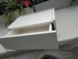 Cajón balda de madera en color blanco, completamente nuevo. Buenas calidad. Buenos herrajes. Pesa un poco - Diseño moderno y funcional. - Ideal para organizar espacios.