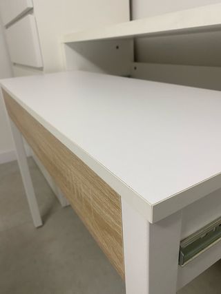 Mesa de escritorio de madera blanca con dos cajones amplios para almacenaje. Como nueva, poco uso.