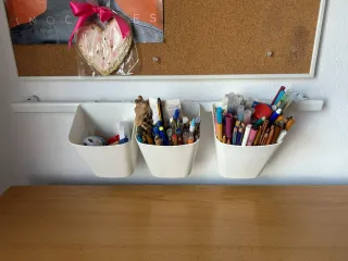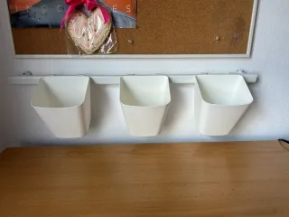 Conjunto de tres organizadores de lapiceros. - Diseño moderno y funcional. - Se cuelgan en una barra. - Ideales para material de escritorio.