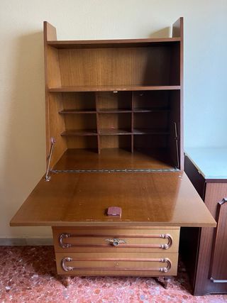 Mueble escritorio bureau con puerta y con dos cajones pequeños.. Hay una estantería a juego de Regalo que le falta una pata. De buena calidad. Solo esta semana