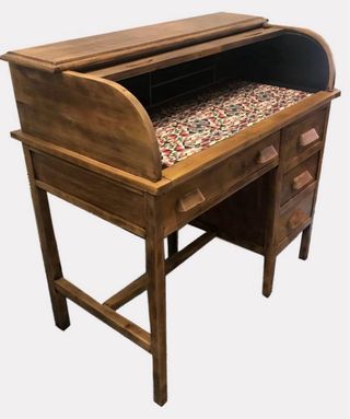 escritorio restaurado, dejandolo en madera clara y con un papel cubista en el interior. precio super rebajado porque necesito hacer espacio en el taller, el mueble está perfecto Si te interesa puedo gestionar el transporte 🚚
