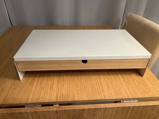 ELLOVEN Soporte monitor con cajon de bambú. Organizador de escritorio Ikea bambú y metal. Este organizador de escritorio de Ikea combina materiales naturales y modernos para mantener tu espacio ordenado. - Fabricado en bambú y metal. - Diseño funcional con compartimentos. Base monitor con cajón, blanco, 47x26x10 cm