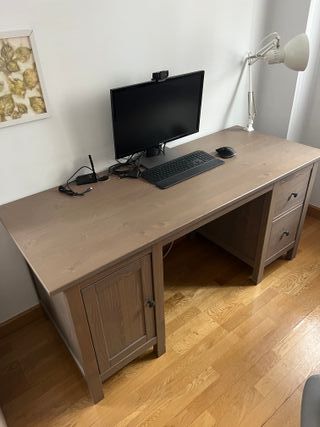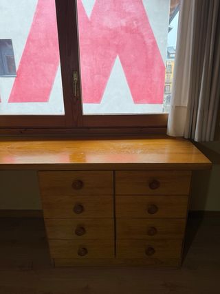 Un escritorio con acabado de madera de IKEA en buen estado, como nuevo, con cajones y amplio espacio de trabajo para computadoras o archivos de papel. Originalmente lo pagué por 350€, pero lo vendo por 200€ porque está en buen estado. No es posible debido a la aplicación Wallapop poner enlaces, pero el nombre del escritorio en IKEA es “HEMNES” si deseas buscarlo para validar el precio. No se puede transportar. El transporte corre a cargo del comprador. Gracias por su comprensión.