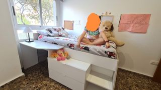 Cama en perfecto estado alta con cueva debajo. Se entregaría desmontada si lo quieren. Con escritorio integrado, dos cajones y escalera. Muy poco uso. Se entrega sin colchón ni somier