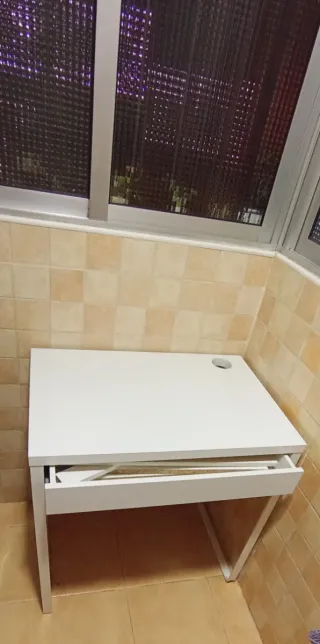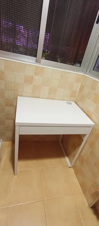 Elegante escritorio con un diseño moderno y funcional. Perfecto para cualquier espacio.Tiene un agujero para instalar un ordenador o TV. La silla no está incluida. No hago envíos, recoger en Granada. - Cajón espacioso para almacenamiento. - Patas de metal para mayor estabilidad. - Acabado blanco brillante.
