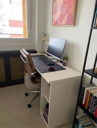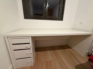Mesa de escritorio moderna y funcional. Apenas 6 meses de uso - Diseño limpio y minimalista. - Incorpora dos cajones y un espacio de almacenamiento. - Acabado en color blanco.