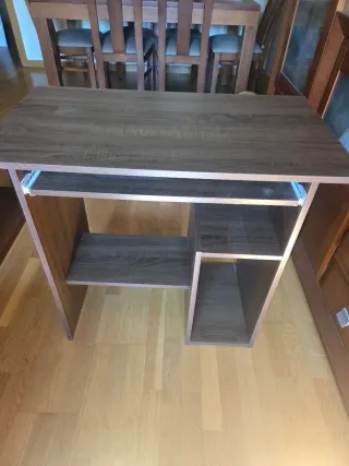 Escritorio funcional con un diseño moderno. - Amplia superficie de trabajo. - Cajón superior para almacenamiento. - Compartimento lateral con puerta. - Patas metálicas resistentes. Las medidas las teneis en la 3ra imagen negociable.