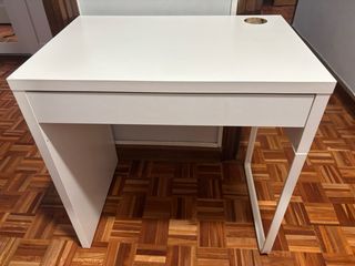 Escritorio MICKE de Ikea en color blanco. Sus medidas son 105x50 cm. - Diseño moderno y funcional. - Cajón y compartimento de almacenaje. - Hueco para pasar cables. Se recoge urbanización Calalberche al lado de Aldea del Fresno, Madrid Existe posibilidad si no de Alameda De Osuna?
