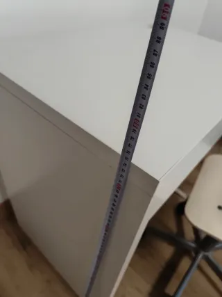 Escritorio de Ikea en color blanco. Diseño moderno y funcional. Precio no negociable. - Cajón amplio. - Compartimento de almacenamiento lateral. Tiene algunos pequeños desperfectos que aparecen en la foto en la tabla principal superior. Se encuentra semidesmontado, con visagras y tornillos puestos.
