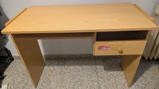 Escritorio de madera con unas medidas de 90cm de alto, 110cm de ancho y 60cm de profundidad. - no se puede sacar el cajón (instable) - recogida tercera planta