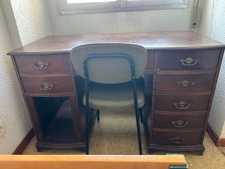 Este es un escritorio antiguo con un diseño clásico y elegante. - Amplia superficie de trabajo. - Múltiples cajones para almacenamiento. - Patas robustas para mayor estabilidad. - medidas: 1:,0 x 70x 50 de fondo. Venta directa, no hago envios. Recoger al domicilio.