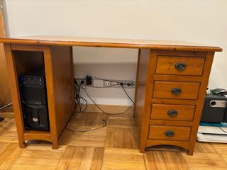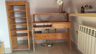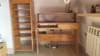 Mueble de escritorio con diseño clásico y funcional. - Superficie amplia para ordenador. - Cajón integrado para almacenamiento. - Estante inferior abierto. - Brazo extensible de 67cm × 32,5cm Se vende económico por mudanza. Si vienes a por él en menos de 48 horas te descuento 5€.