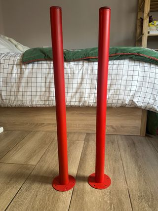 Tiene dos patas rojas y dos blancas. Algun rasguño en el tablero, pero nada grave. Mesa de escritorio de Ikea en color blanco. Un mueble versátil y funcional para tu espacio de trabajo o estudio. - Diseño moderno y minimalista. - Superficie amplia para colocar ordenador y otros objetos.