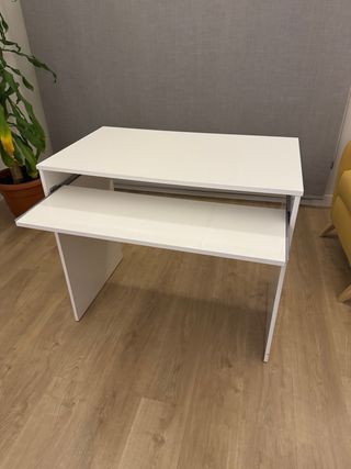 Escritorio para ordenador Ikea con plataforma extraible para teclado y raton (muy comoda y genia para mantener la superficie despejada). - Tablero de 120x60cm - Altura de 74cm