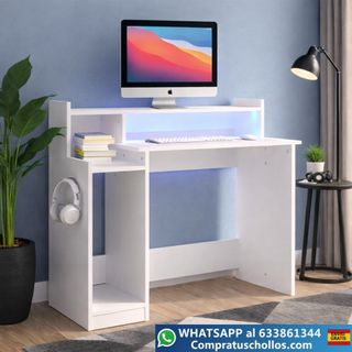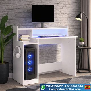 ⭐⭐Productos son NUEVOS. Somos TIENDA ONLINE⭐⭐ ⭐⭐ENVIO GRATIS A TODA LA PENINSULA⭐⭐ ⭐⭐FINANCIE SU COMPRA HASTA EN 36 MESES⭐⭐ ⭐⭐WHATSAPP 633-861-344⭐⭐ ✅✅compratuschollos. com✅✅ Este escritorio moderno con luces LED aporta estilo y funcionalidad a cualquier espacio. Fabricado en madera contrachapada resistente, ofrece una superficie amplia para ordenador y accesorios. Su diseño permite mayor comodidad para las piernas y se adapta a estudio, oficina o zona gaming. Incluye sistema de anclaje para mayor seguridad y conector USB para la iluminación.